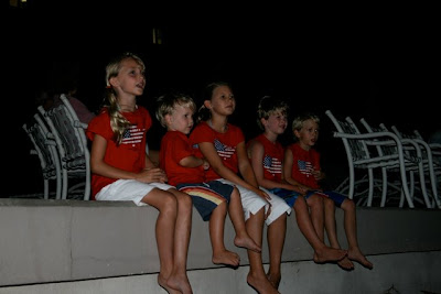 We celebrated the Fourth of July with family here at the beach all day. The kids were looking forward to the evening activities, and getting ready for a late-night performance (the girls), the fireworks (everyone), the night swim (all the kids), and special popsicles (again, the kids) from breakfast on.